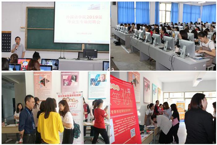 为切实做好2019届毕业生就业工作,为就业困难毕业生提供就业精准帮扶,5月19日,外国语学院在新外语楼第一阶梯教室举办2019届就业专场招聘会,淮北市高级实验中学(国际部)、学而思网校、宿州易游联动网络科技有限公司、学思堂教育、佳音英语、爱贝国际少儿英语、江苏省泗洪如皋一中实验学校、知阅教育等用人单位代表参加了此次招聘会。学院学生就业工作负责人、毕业班辅导员及2019届毕业生参加了招聘会。